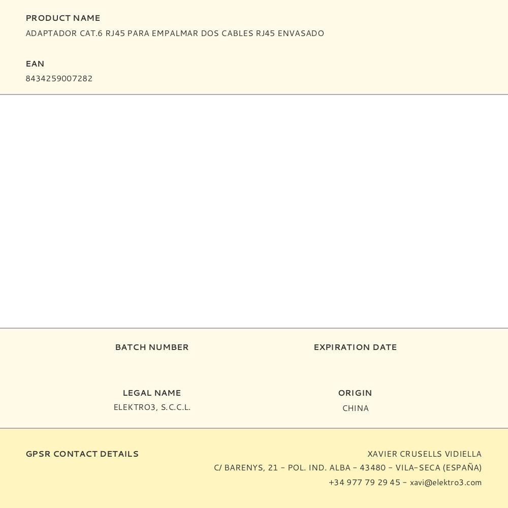 ADAPTADOR CAT.6 RJ45 PARA EMPALMAR DOS CABLES RJ45 ENVASADO | Repuesto de calidad, compatible y fácil de instalar