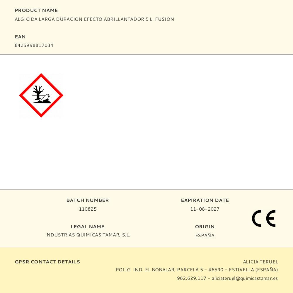ALGICIDA LARGA DURACIÓN EFECTO ABRILLANTADOR 5 L. FUSION | Repuesto de calidad, compatible y fácil de instalar