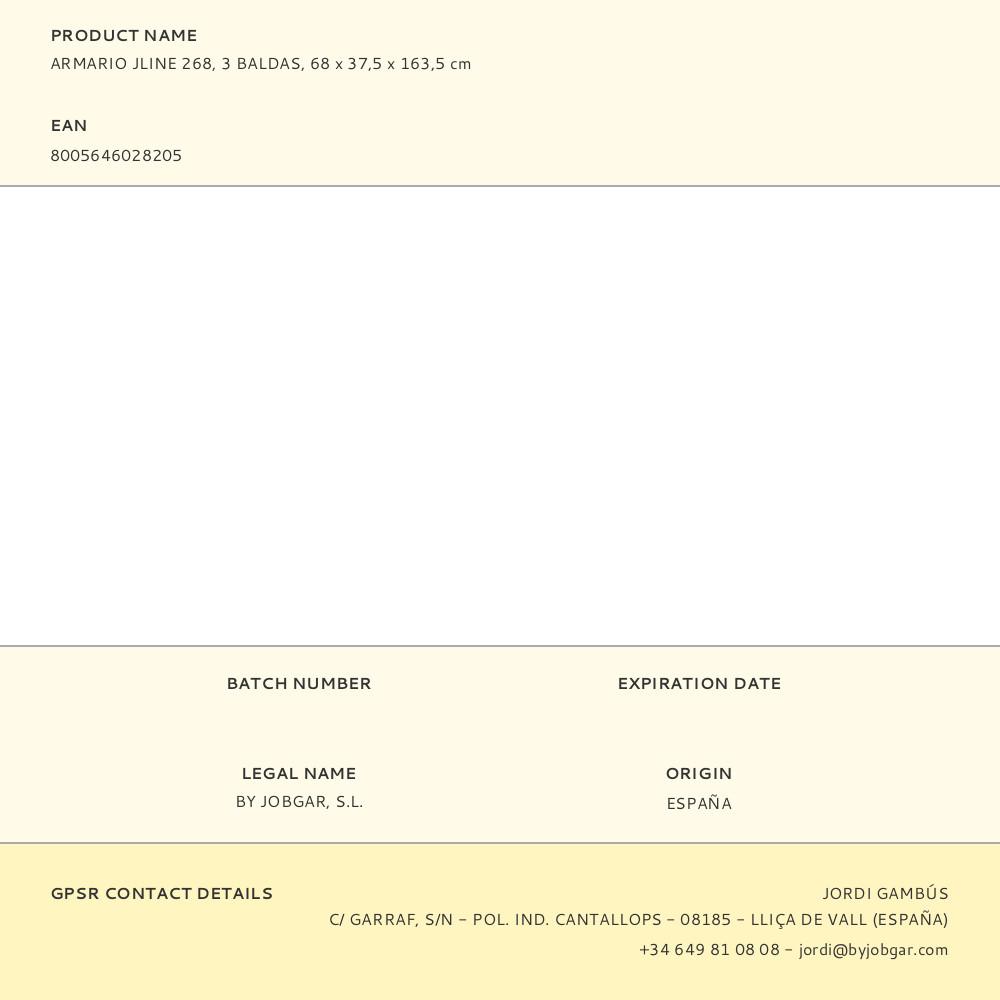 Sé el primero en valorar “ARMARIO JLINE 268, 3 BALDAS, 68 x 37,5 x 163,5 cm”
