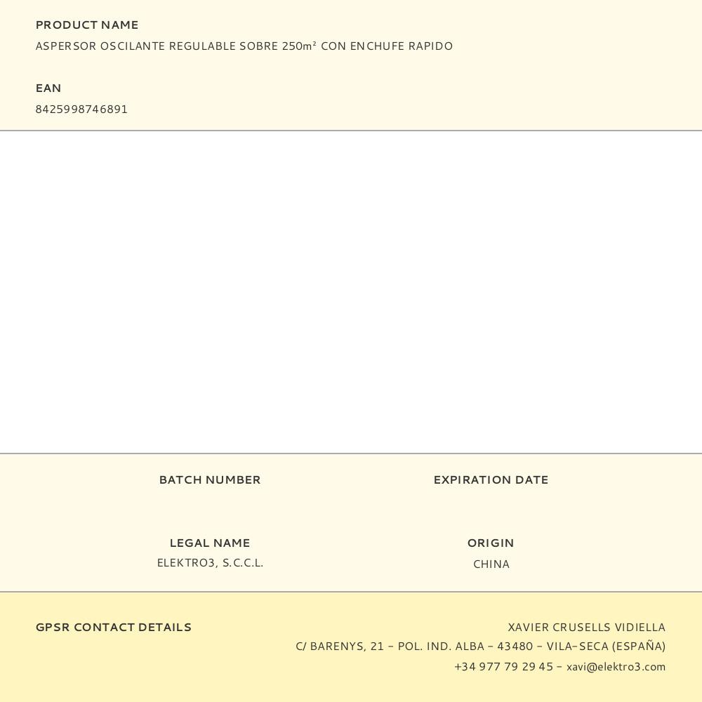 ASPERSOR OSCILANTE REGULABLE SOBRE 250m² CON ENCHUFE RAPIDO