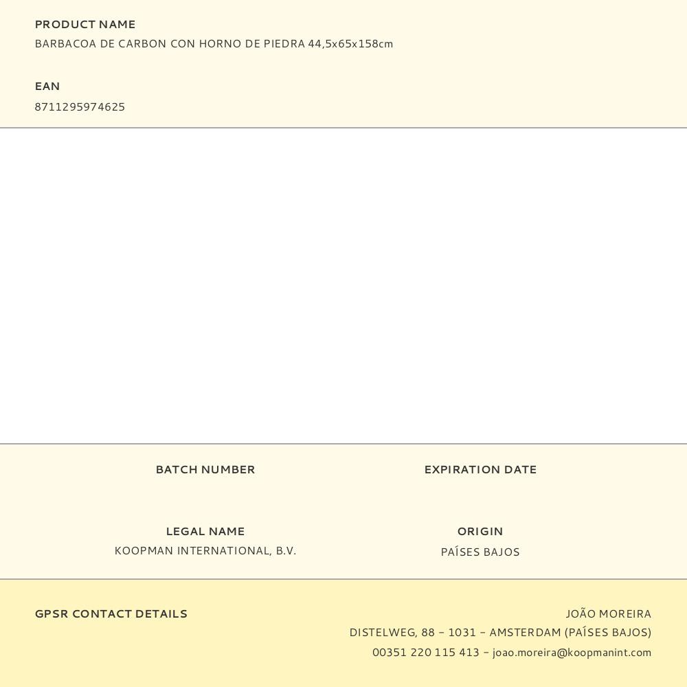 BARBACOA DE CARBON CON HORNO DE PIEDRA 44,5x65x158cm | Repuesto de calidad, compatible y fácil de instalar