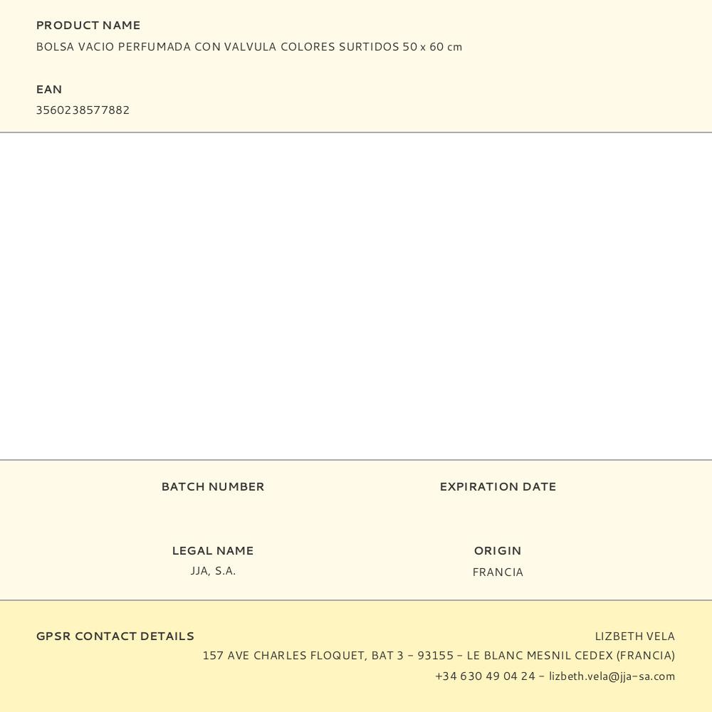 BOLSA AL VACÍO PERFUMADA CON VÁLVULA 50 x 60 cm
