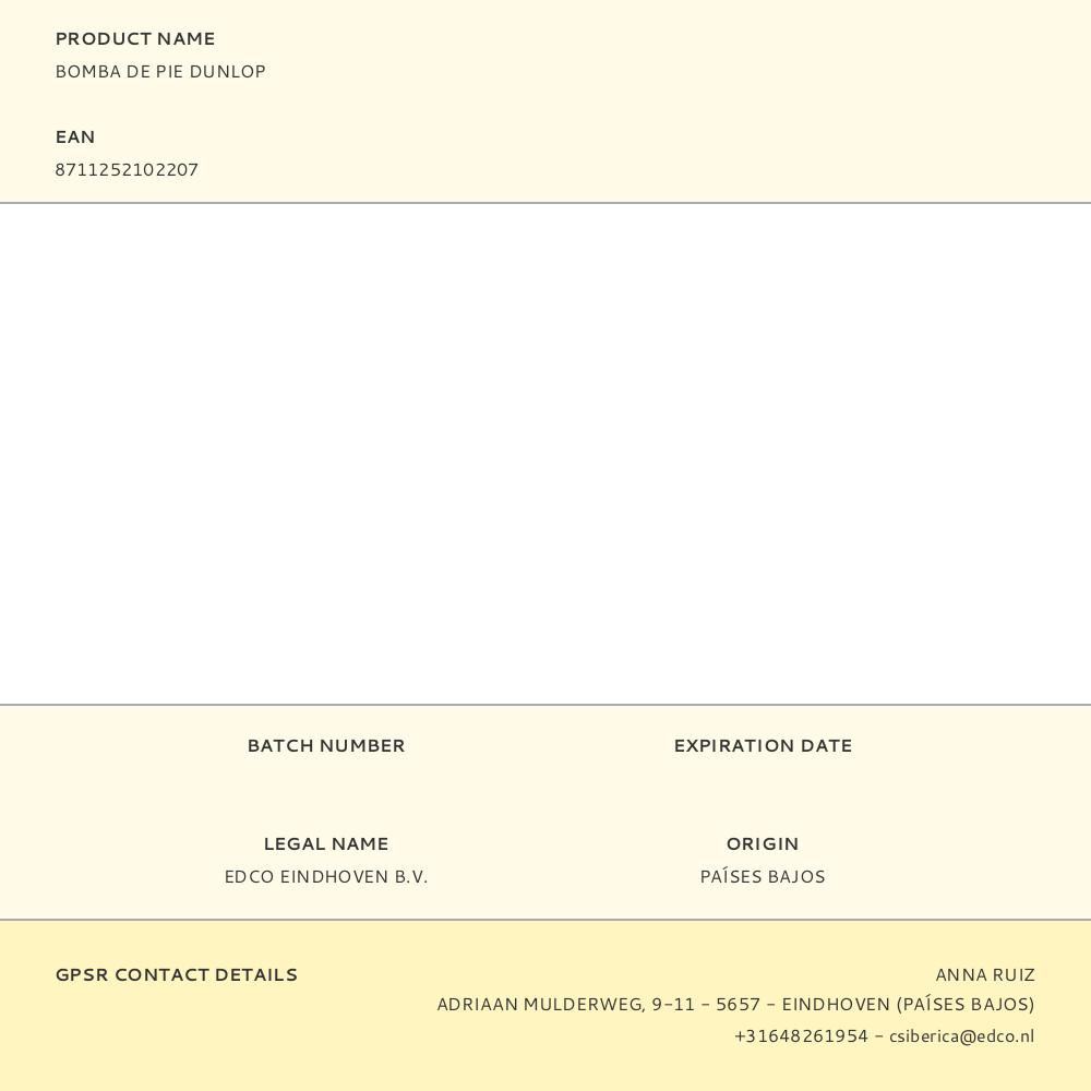 BOMBA DE PIE DUNLOP 22,5×22,5×62,5cm. Repuesto original de alta calidad, ideal para sustitución y mantenimiento. Compatible con instalaciones domésticas y profesionales. Producto duradero, fácil de instalar y optimizado para un rendimiento seguro.