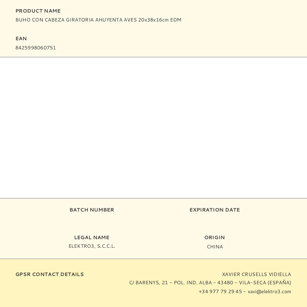 BUHO CON CABEZA GIRATORIA AHUYENTA AVES 20x38x16cm EDM