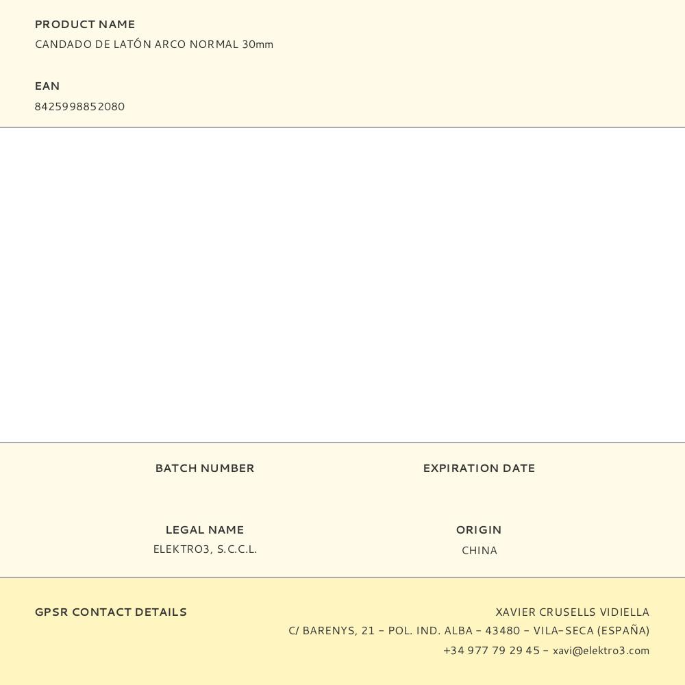 CANDADO DE LATÓN ARCO NORMAL 30 mm