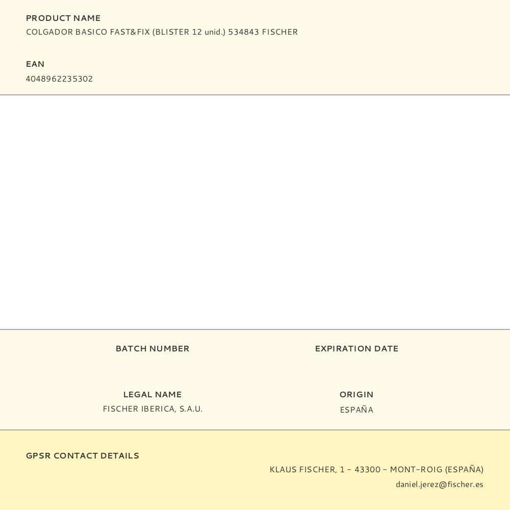 COLGADOR BASICO FAST&FIX (BLISTER 12 unid.) 534843 FISCHER | Repuesto de calidad, compatible y fácil de instalar