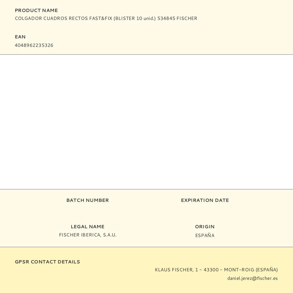 COLGADOR CUADROS RECTOS FAST&FIX (BLISTER 10 unid.) 534845 FISCHER | Repuesto de calidad, compatible y fácil de instalar