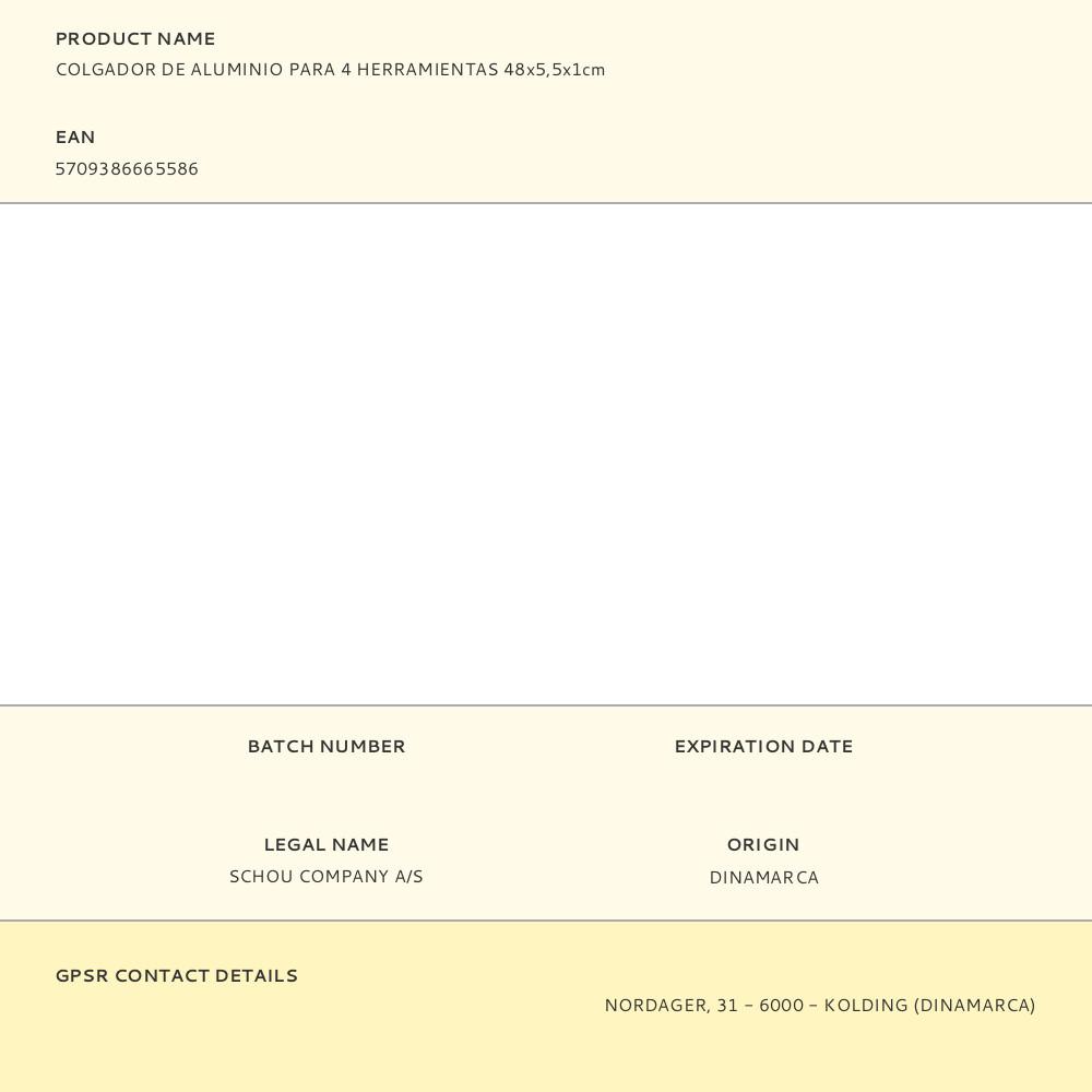 COLGADOR DE ALUMINIO PARA 4 HERRAMIENTAS 48×5,5x1cm | Repuesto de calidad, compatible y fácil de instalar