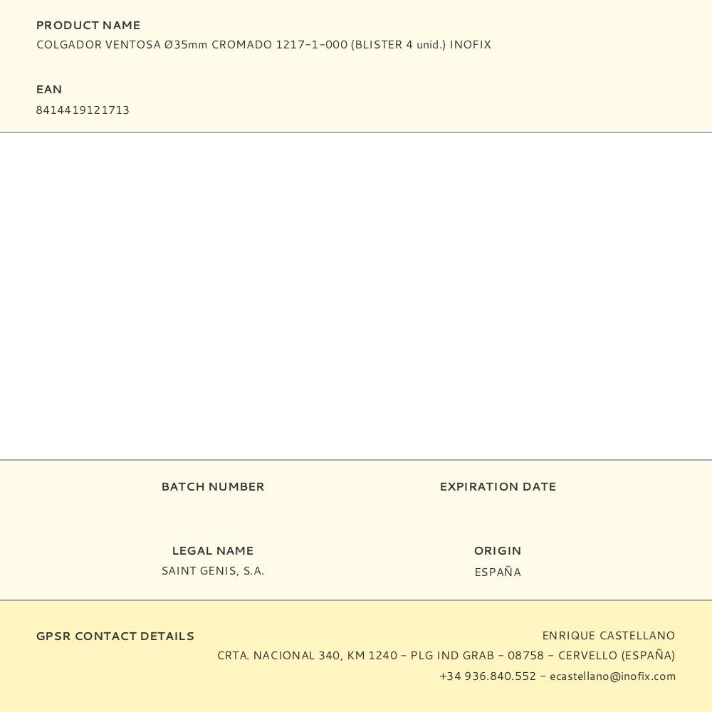 COLGADOR VENTOSA Ø35mm CROMADO 1217-1-000 (BLISTER 4 unid.) INOFIX | Repuesto de calidad, compatible y fácil de instalar