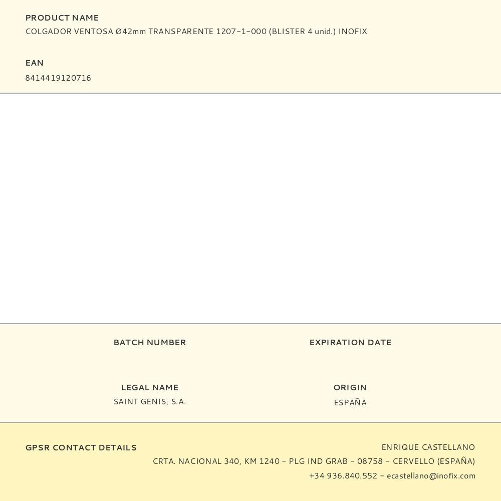 COLGADOR VENTOSA Ø42mm TRANSPARENTE 1207-1-000 (BLISTER 4 unid.) INOFIX | Repuesto de calidad, compatible y fácil de instalar