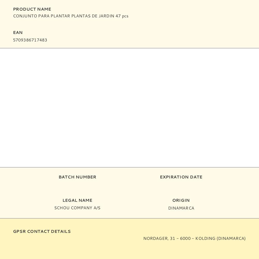 CONJUNTO PARA PLANTAR PLANTAS DE JARDIN 47pcs. Repuesto original de alta calidad, ideal para sustitución y mantenimiento. Compatible con instalaciones domésticas y profesionales. Producto duradero, fácil de instalar y optimizado para un rendimiento seguro.