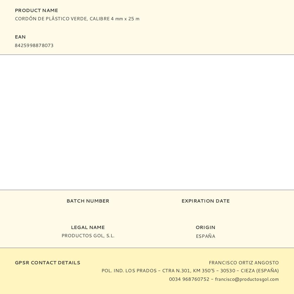 CORDÓN DE PLÁSTICO VERDE, CALIBRE 4 mm x 25 m