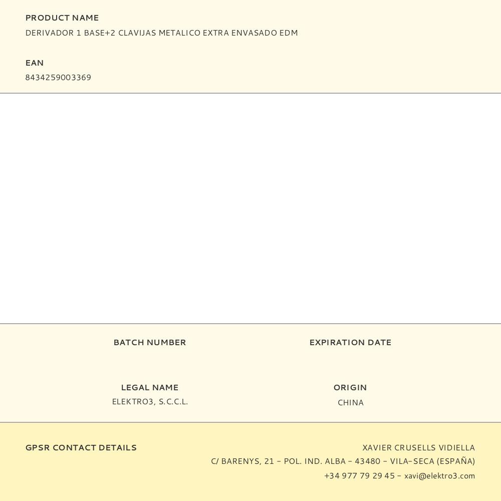 Sé el primero en valorar “DERIVADOR 1 BASE+2 CLAVIJAS METALICO EXTRA ENVASADO EDM”