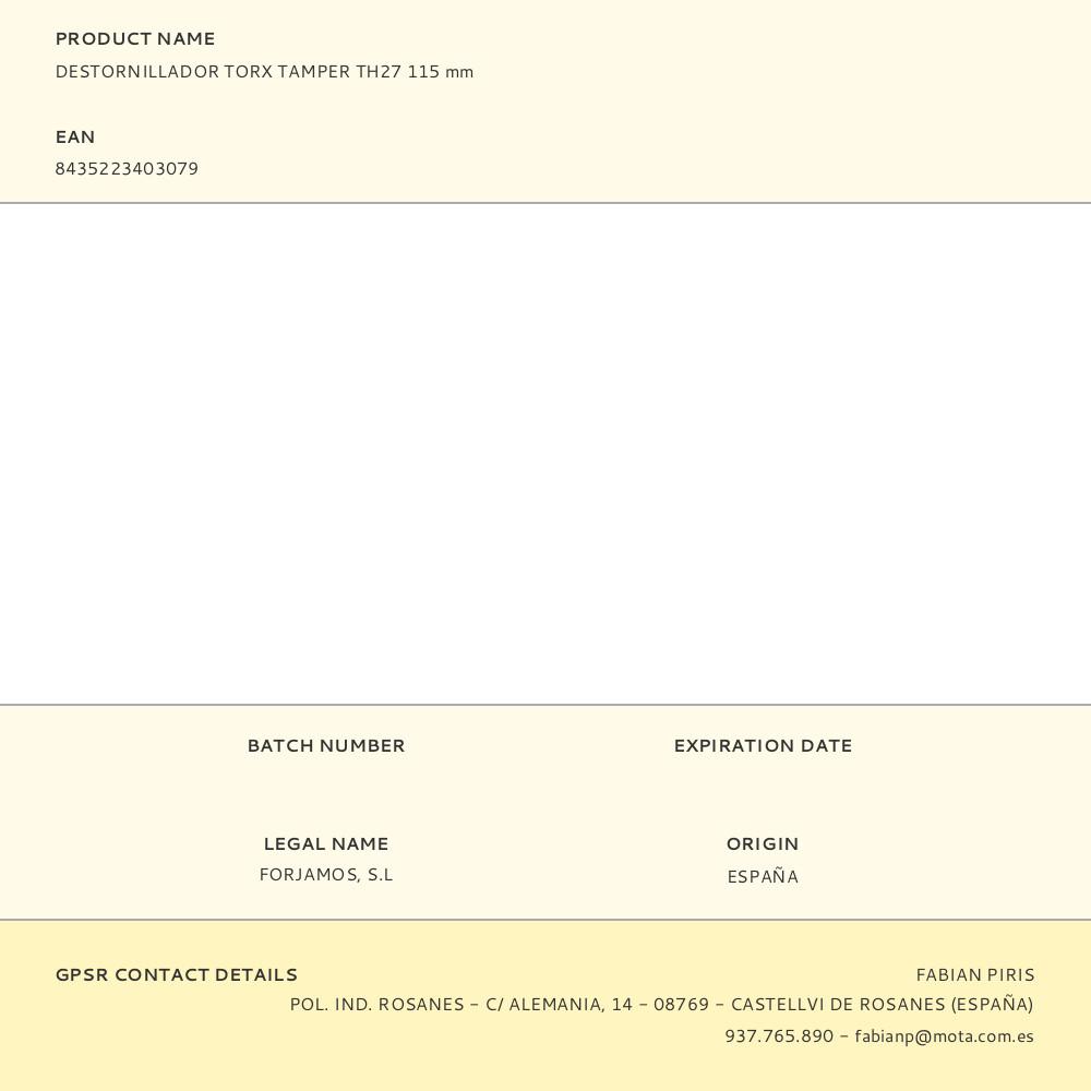 DESTORNILLADOR TORX TAMPER TH27 125 mm | Repuesto de calidad, compatible y fácil de instalar