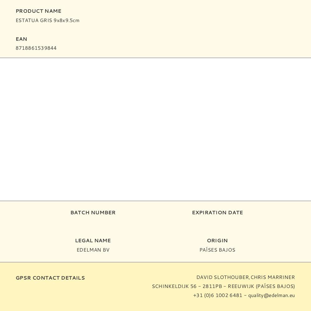 ESTATUA GRIS 9 x 8 x 9,5 cm. Repuesto original de alta calidad, ideal para sustitución y mantenimiento. Compatible con instalaciones domésticas y profesionales. Producto duradero, fácil de instalar y optimizado para un rendimiento seguro.