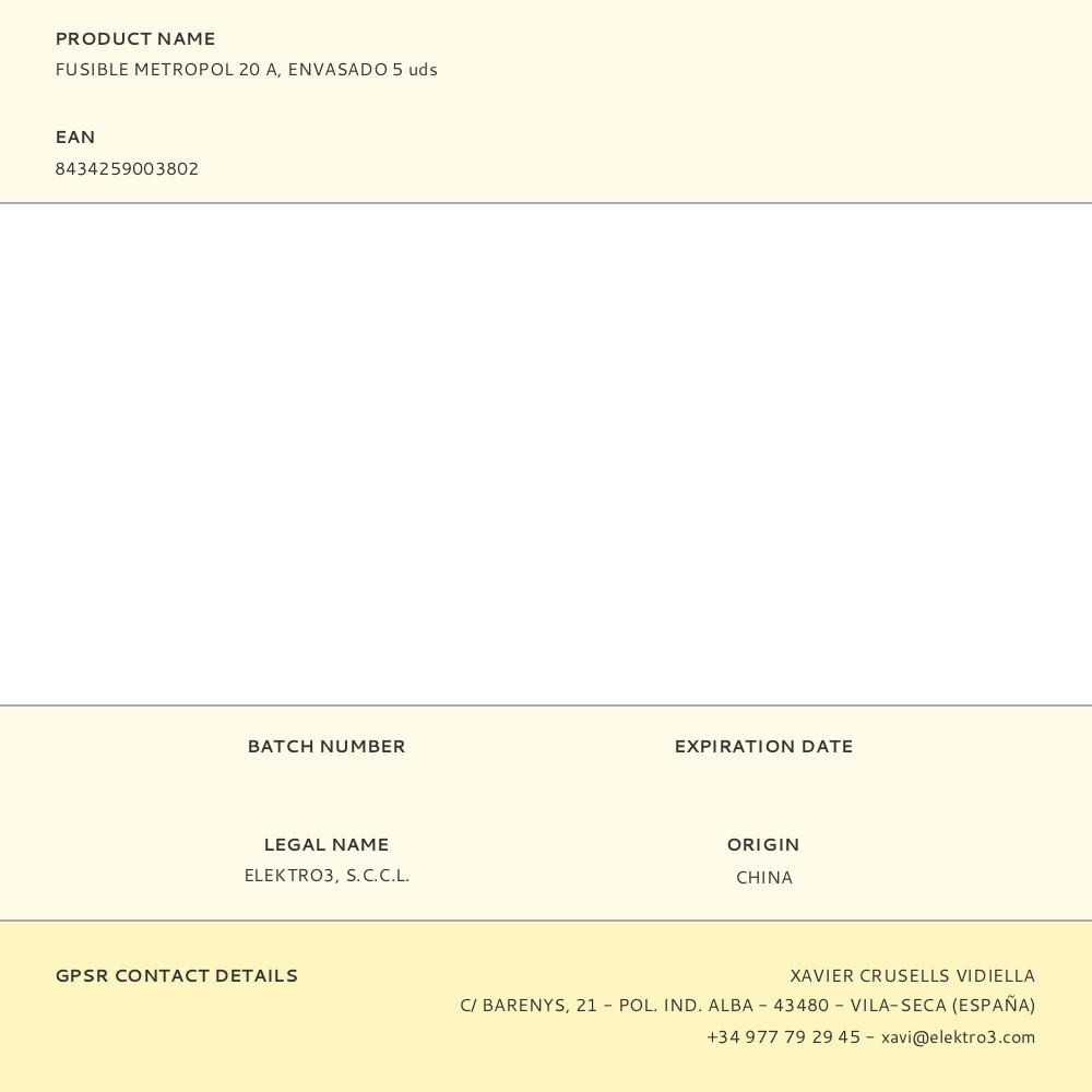 Sé el primero en valorar “FUSIBLE METROPOL 20 A, ENVASADO 5 uds”