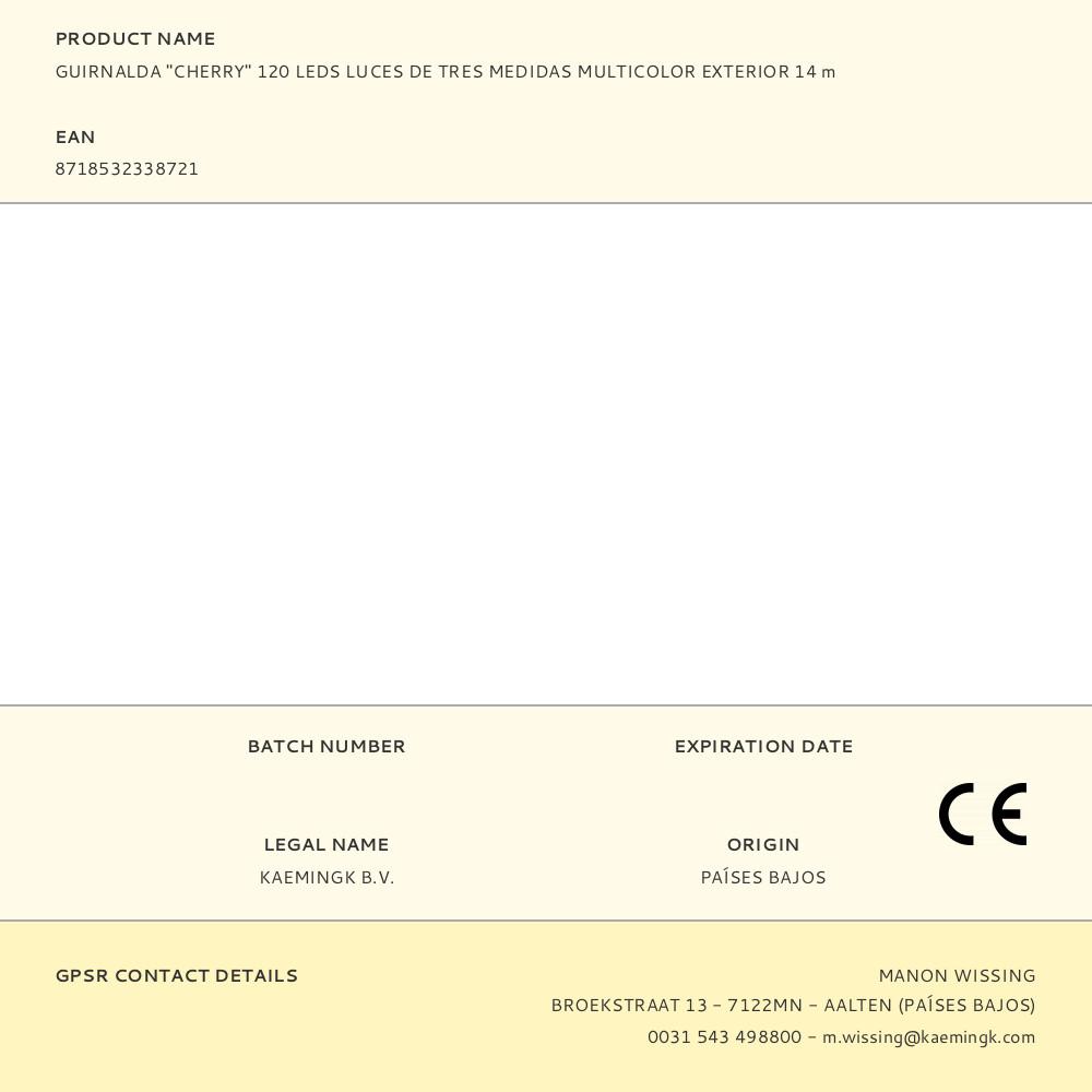 GUIRNALDA «CHERRY» 120 LEDS DE TRES MEDIDAS, MULTICOLOR, EXTERIOR, 9 m | Repuesto de calidad, compatible y fácil de instalar