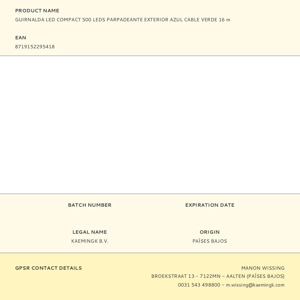 GUIRNALDA LED COMPACT 500 LEDS PARPADEANTE EXTERIOR AZUL CABLE VERDE 16 m | Repuesto de calidad, compatible y fácil de instalar