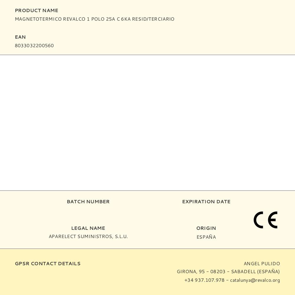 MAGNETOTERMICO REVALCO 1 POLO 25A C 6KA RESID/TERCIARIO | Repuesto de calidad, compatible y fácil de instalar