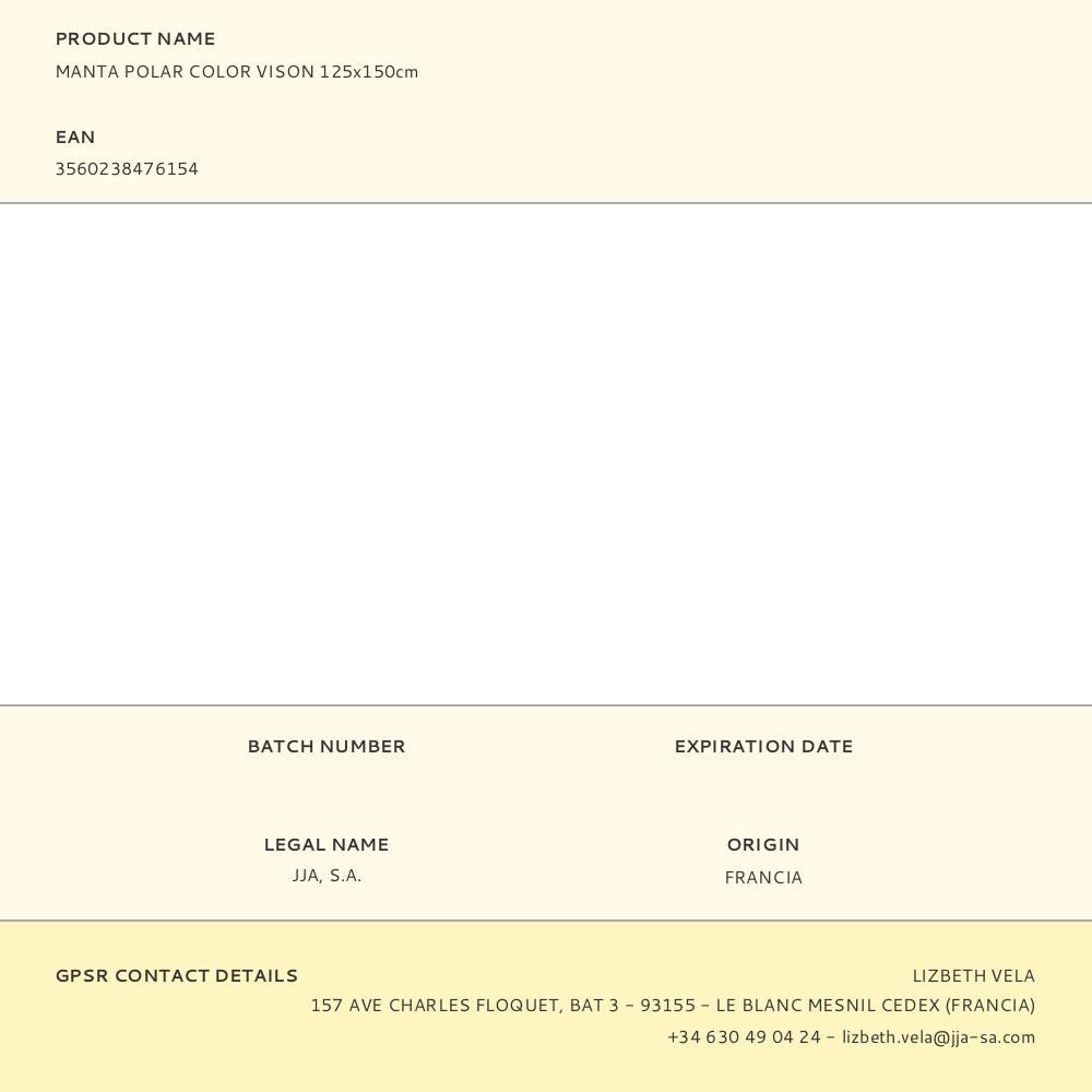 MANTA POLAR COLOR VISON 125 x 150 cm. Repuesto original de alta calidad, ideal para sustitución y mantenimiento. Compatible con instalaciones domésticas y profesionales. Producto duradero, fácil de instalar y optimizado para un rendimiento seguro.