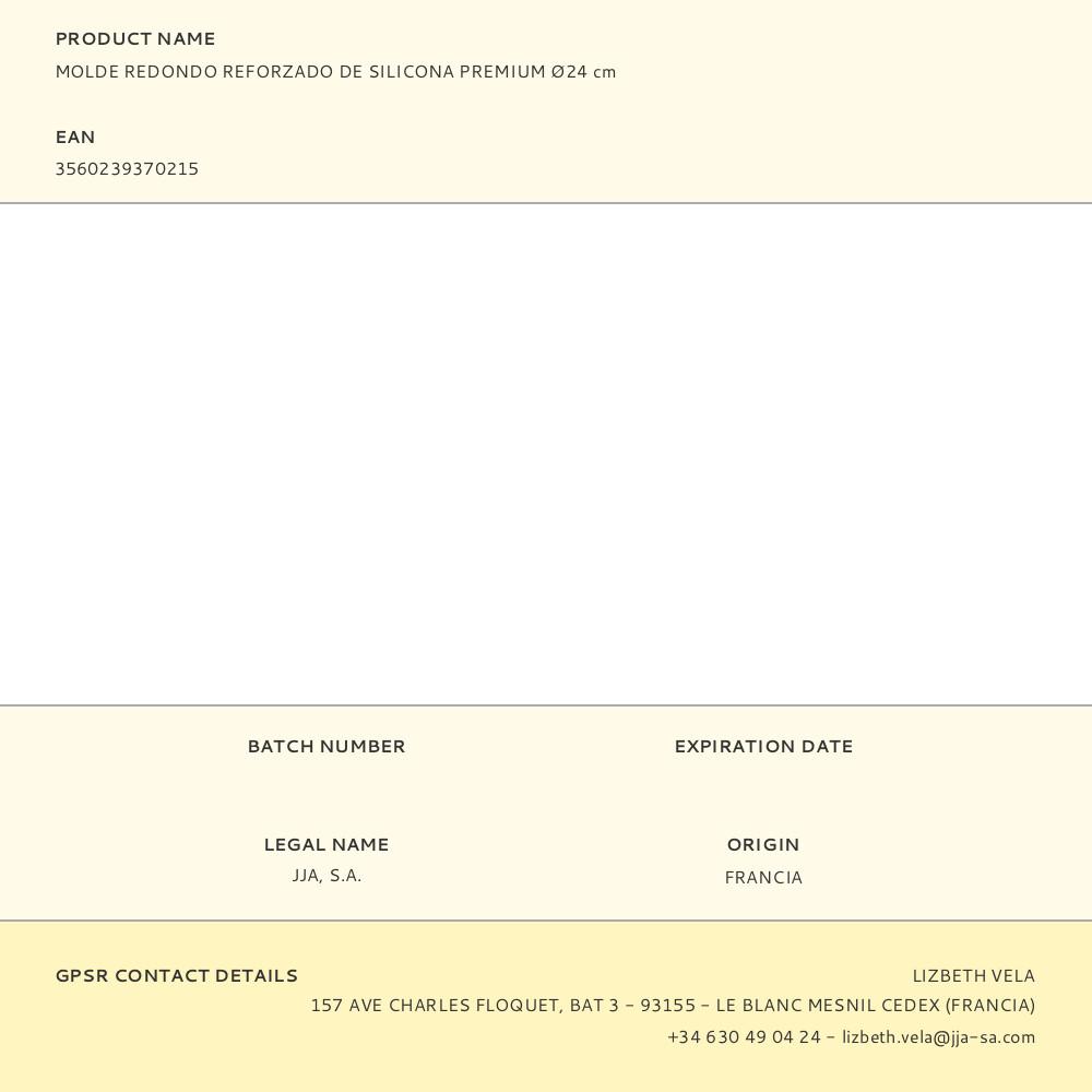 MOLDE REDONDO DE SILICONA Ø26 cm. MATERIAL: SILICONA DE PLATINO PURO DE ALTA CALIDAD, ANTIADHERENTE Y FLEXIBLE, MARCOS RÍGIDOS PARA UN AGARRE ÓPTIMO. ESTE MOLDE ESTÁ DISEÑADO PARA AGUANTAR TEMPERATURAS DE CONGELACIÓN DESDE -20 °C Y DE COCCIÓN HASTA +220°C. GRACIAS A SU ESTRUCTURA, PERMITE UN DESMOLDADO RÁPIDO Y FÁCIL. LAS PROPIEDADES ANTIADHERENTES DEL MOLDE DE SILICONA EXCLUYEN AL MOLDE DE TODO TIPO DE ENGRASE. (ES DECIR: NO ES NECESARIO UTILIZAR NINGÚN MATERIAL GRASO) Y FACILITA SU LIMPIEZA CON SOLO PASARLO POR DEBAJO DEL AGUA CALIENTE O TAMBIÉN METERLO EN EL LAVAVAJILLAS. Repuesto original de alta calidad, ideal para sustitución y mantenimiento. Compatible con instalaciones domésticas y profesionales. Producto duradero, fácil de instalar y optimizado para un rendimiento seguro.