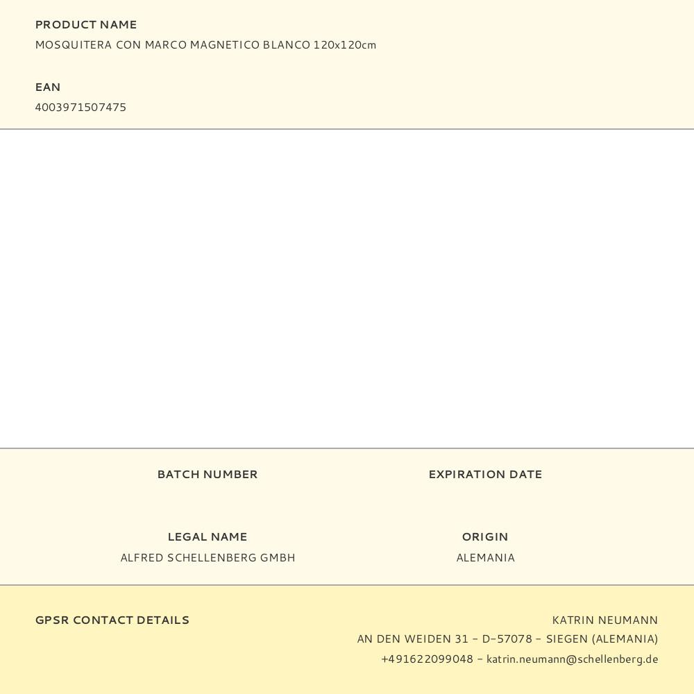 MOSQUITERA CON MARCO MAGNÉTICO, BLANCA, 120 x 120 cm. MONTAJE EN SOLO 15 MINUTOS SIN TALADRO. PARA USO EN EXTERIOR COMO EN EL INTERIOR. PROFUNDIDAD DE SOLO 8 mm, CABE DETRAS DE LA MAYORIA DE LAS PERSIANAS. ESCUADRAS CON ASAS PARA RETIRARLO FACILMENTE. RECORTABLE INDIVIDUALMENTE. DESMONTABLE. Repuesto original de alta calidad, ideal para sustitución y mantenimiento. Compatible con instalaciones domésticas y profesionales. Producto duradero, fácil de instalar y optimizado para un rendimiento seguro.