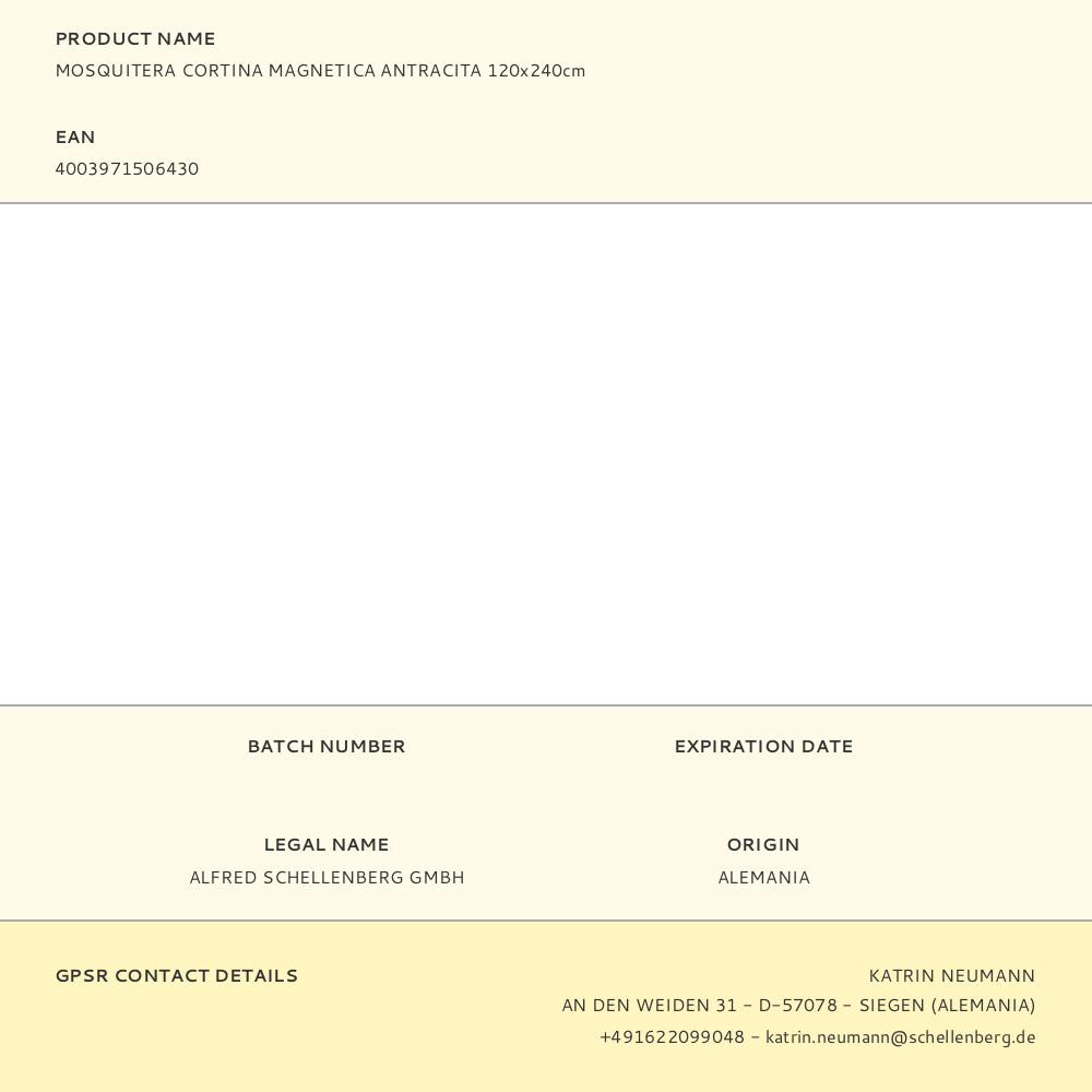 MOSQUITERA CORTINA MAGNÉTICA, ANTRACITA, 120 x 240 cm | Repuesto de calidad, compatible y fácil de instalar