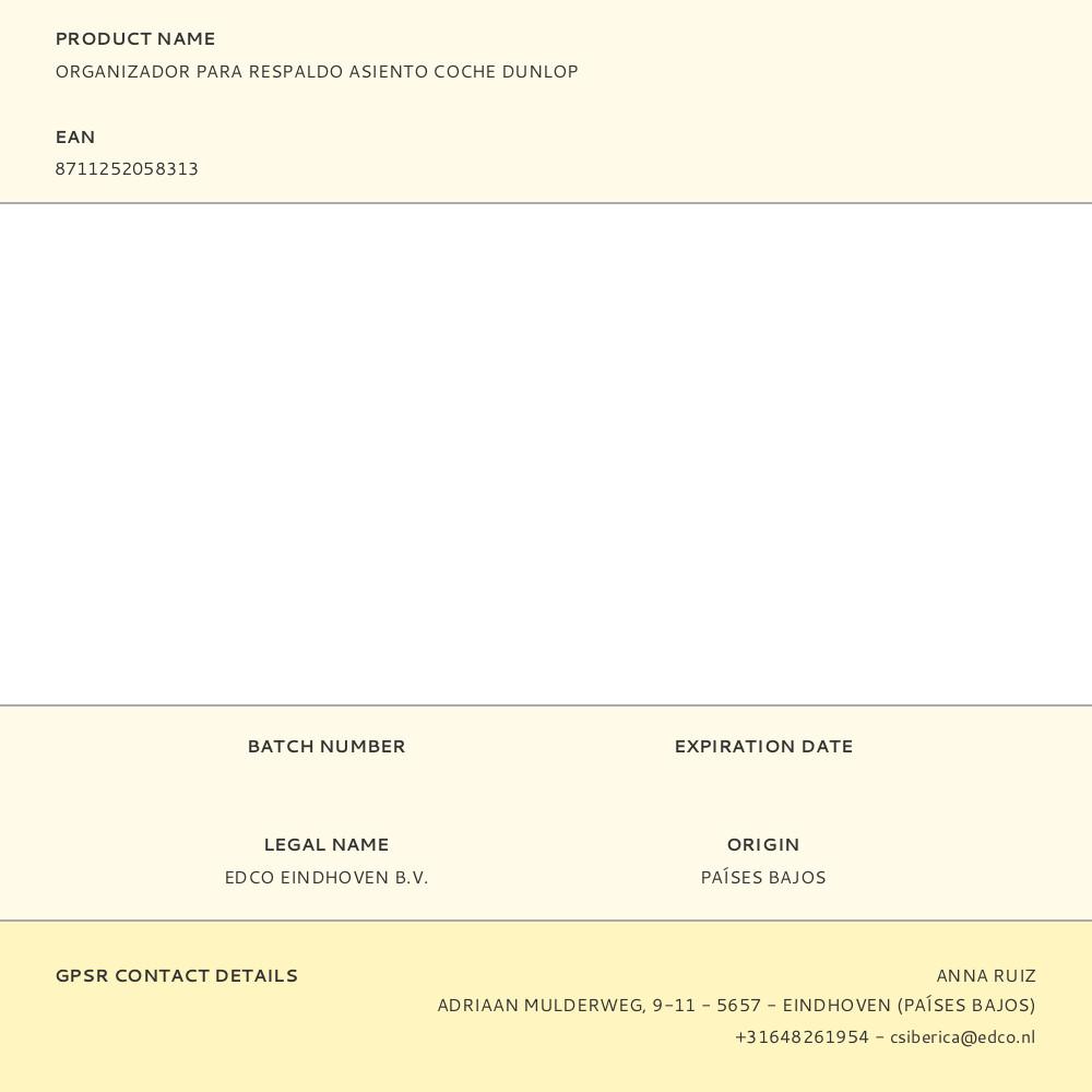 ORGANIZADOR PARA RESPALDO ASIENTO COCHE DUNLOP | Repuesto de calidad, compatible y fácil de instalar