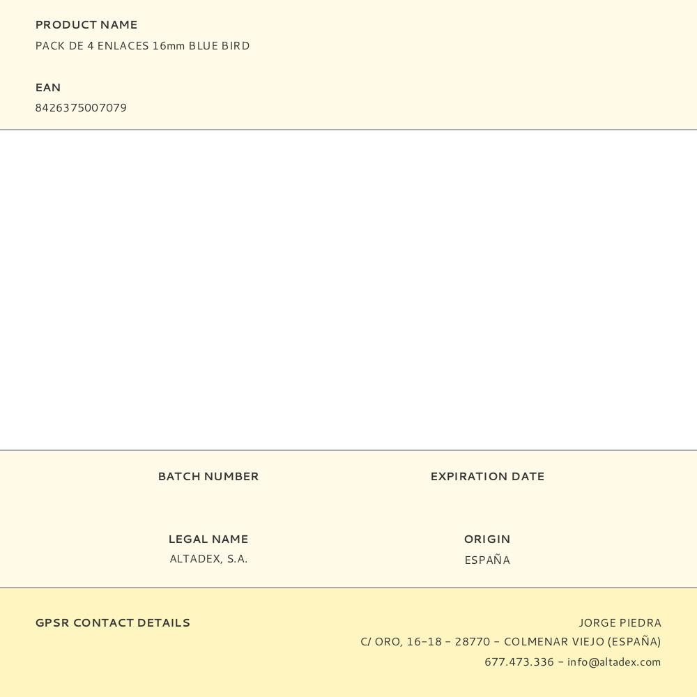 PACK DE 4 ENLACES 16mm BLUE BIRD