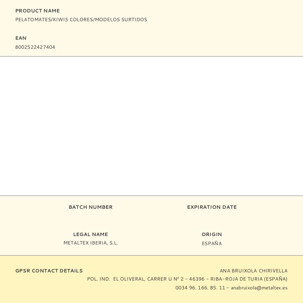 PELATOMATES/KIWIS COLORES/MODELOS SURTIDOS