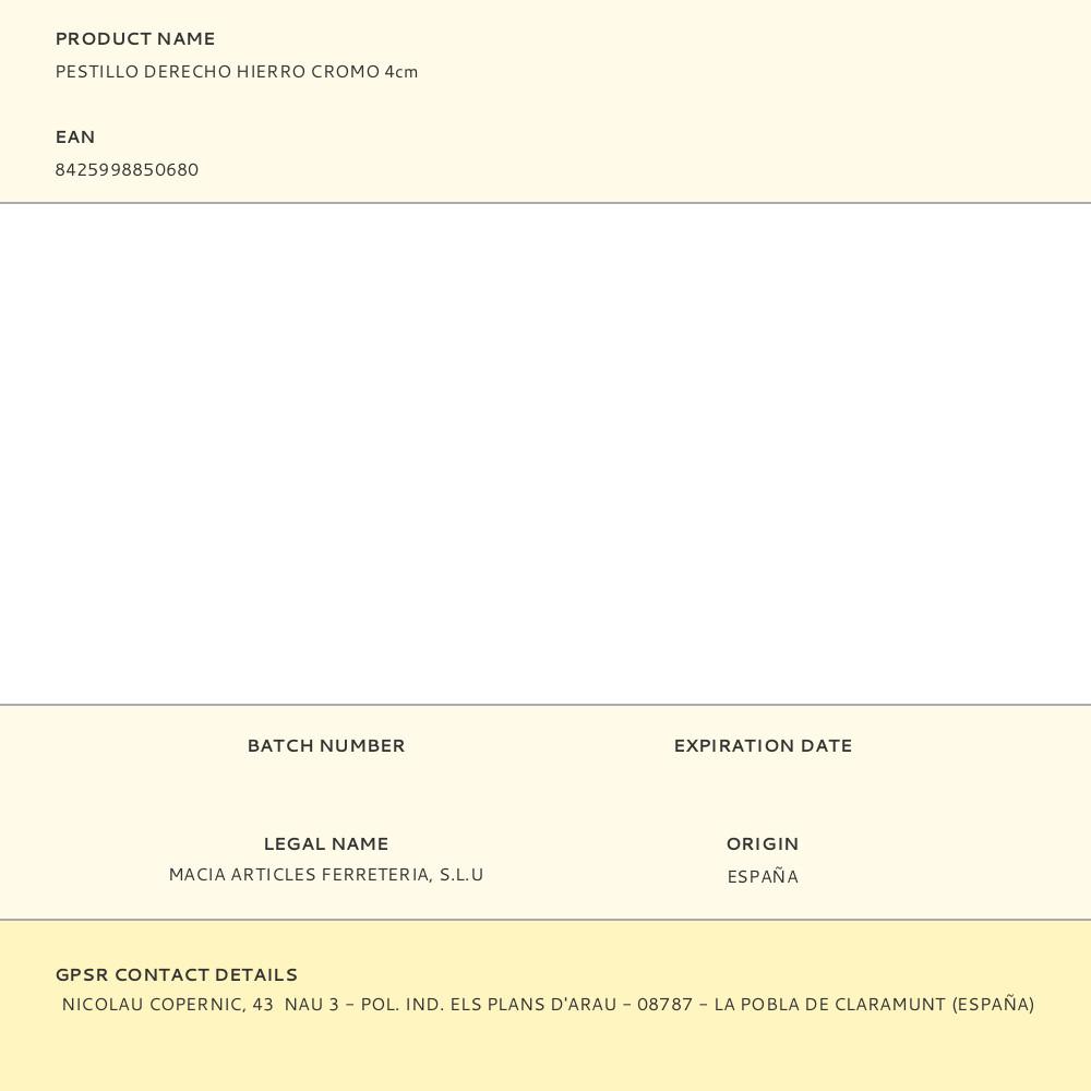 PESTILLO DERECHO HIERRO CROMO 4cm | Repuesto de calidad, compatible y fácil de instalar