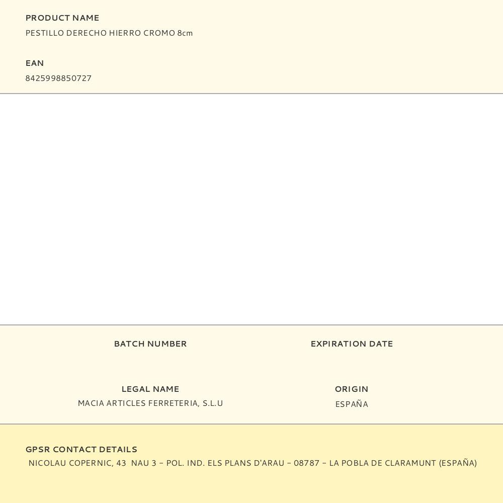 PESTILLO DERECHO HIERRO CROMO 8cm | Repuesto de calidad, compatible y fácil de instalar
