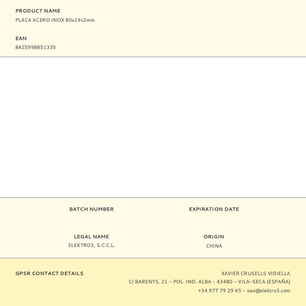 PLACA ACERO INOX 80x19x2mm | Repuesto de calidad, compatible y fácil de instalar