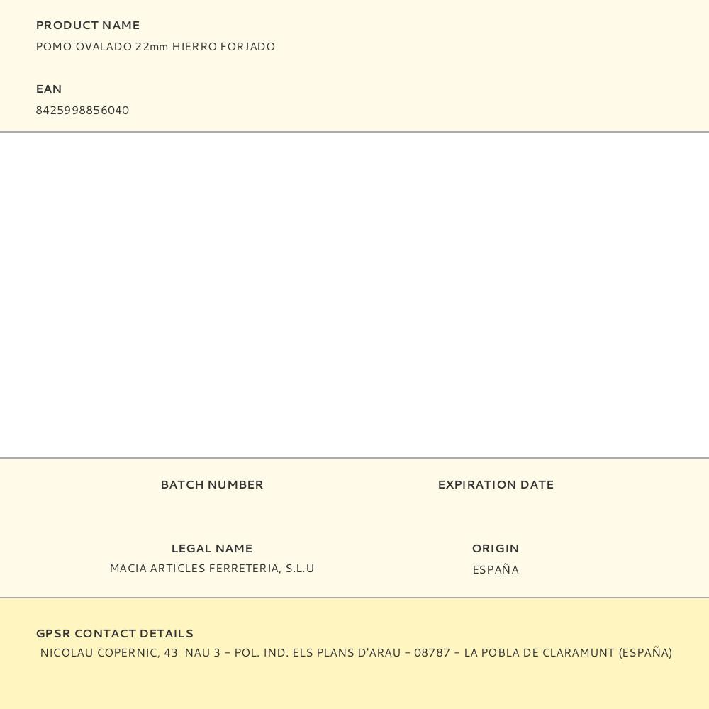 POMO OVALADO 22mm HIERRO FORJADO | Repuesto de calidad, compatible y fácil de instalar