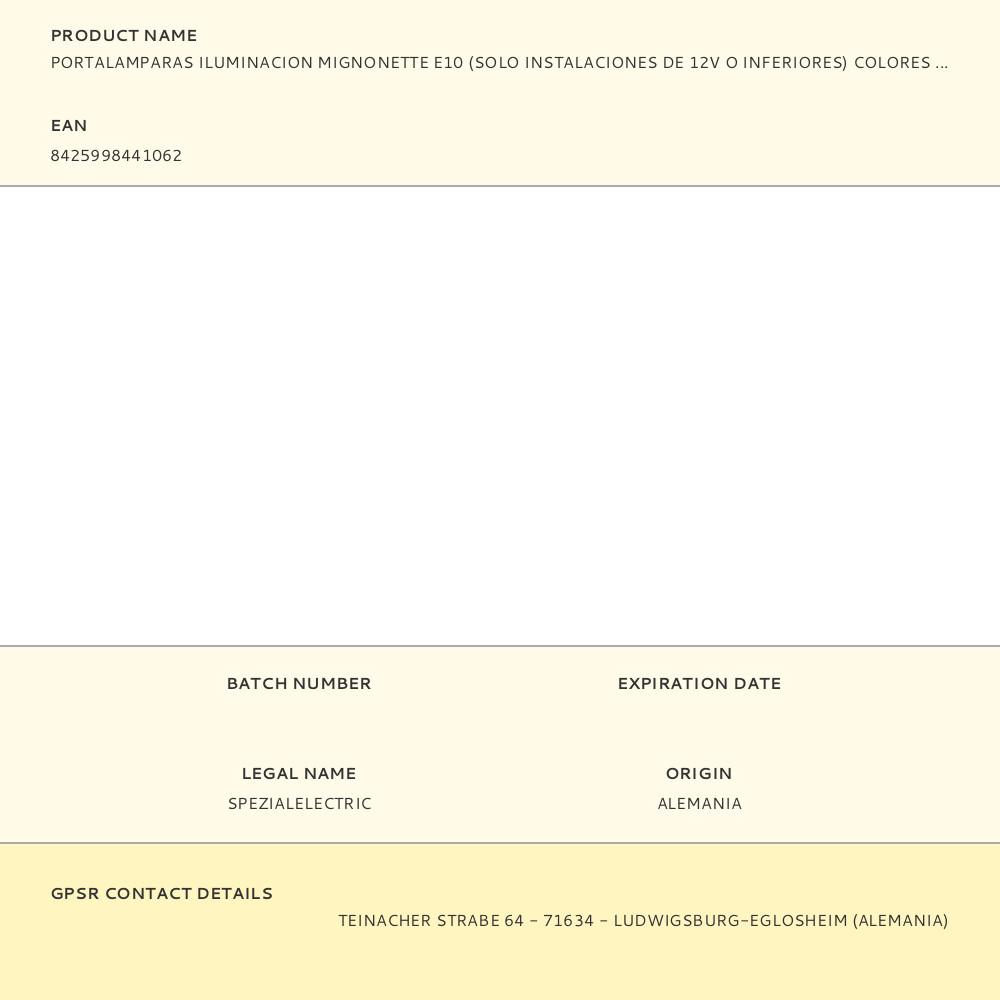 Sé el primero en valorar “PORTALAMPARAS ILUMINACION MIGNONETTE E10 (SOLO INSTALACIONES DE 12V O INFERIORES) COLORES / MODELOS SURTIDOS”