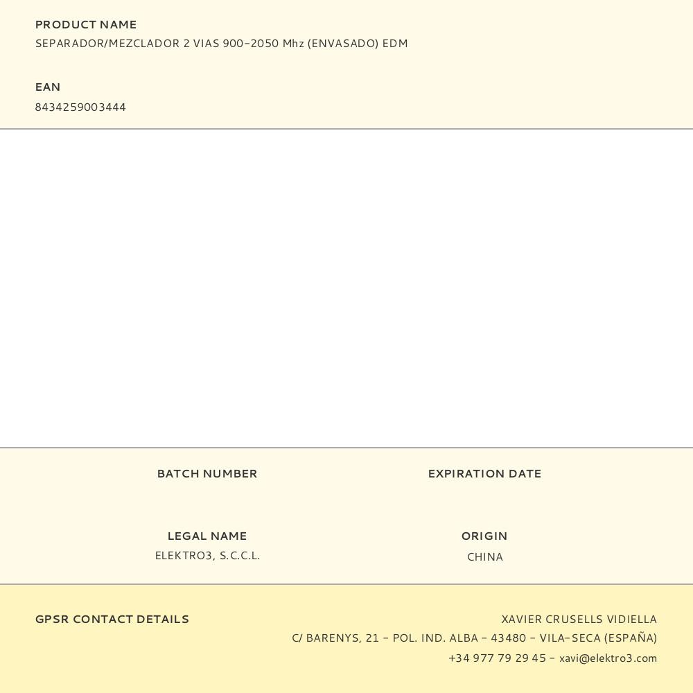 SEPARADOR/MEZCLADOR 2 VIAS 900-2050 Mhz (ENVASADO) EDM | Repuesto de calidad, compatible y fácil de instalar