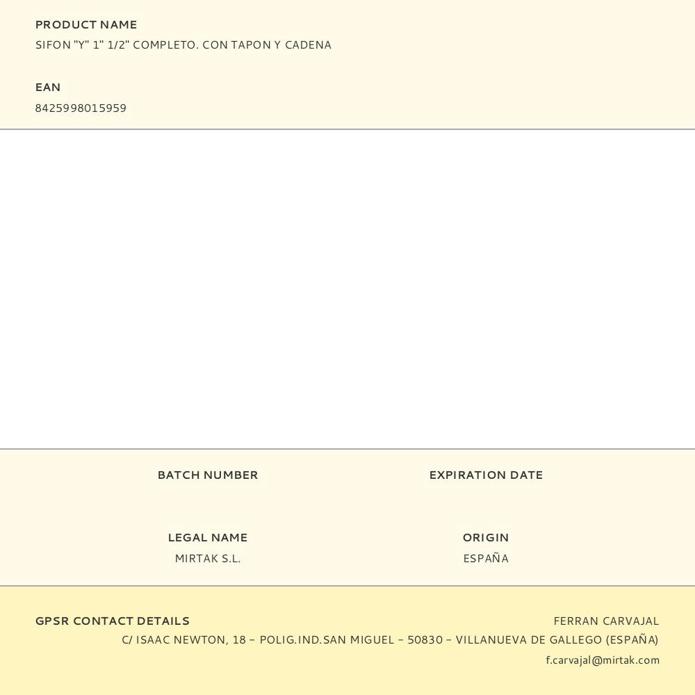SIFON «Y» 1″ 1/2″ COMPLETO. CON TAPON Y CADENA | Repuesto de calidad, compatible y fácil de instalar