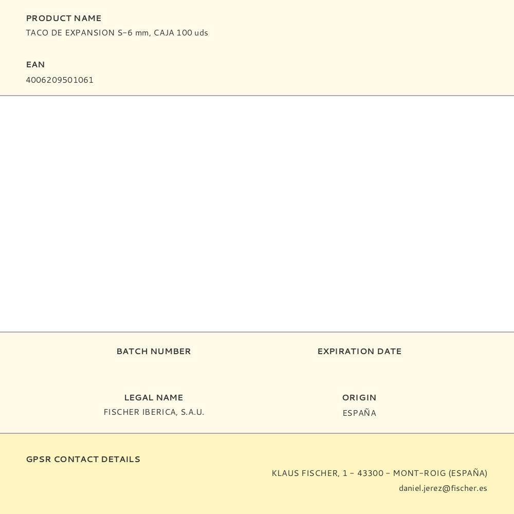TACO DE EXPANSION S-6 mm, CAJA 100 uds