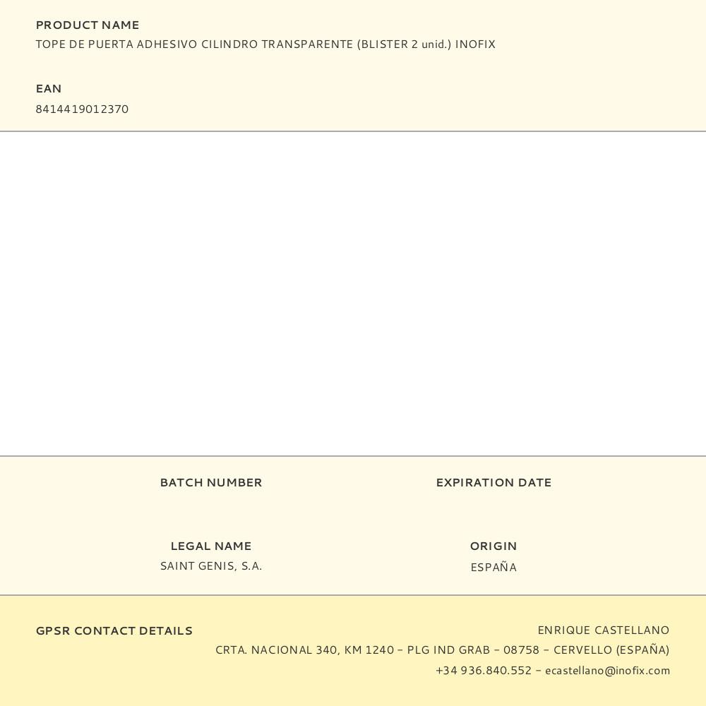 TOPE DE PUERTA ADHESIVO CILINDRO TRANSPARENTE (BLISTER 2 unid.) INOFIX | Repuesto de calidad, compatible y fácil de instalar